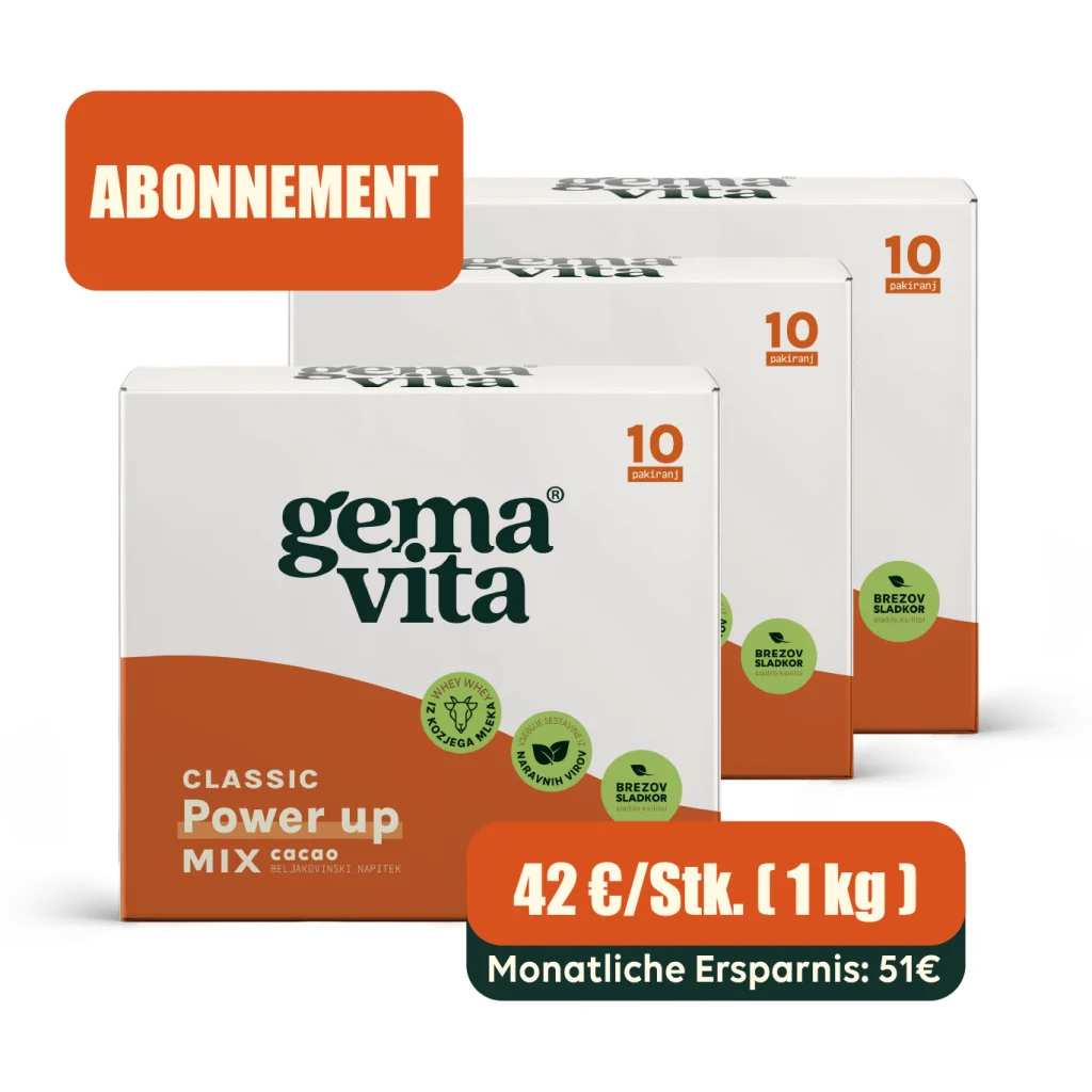 Die Gemavita Trinkmahlzeit enthält vollwertige Proteine, die zur Erhaltung und Zunahme von Muskelmasse beitragen, sowie Ballaststoffe, die im Rahmen einer abwechslungsreichen Ernährung die normale Darmfunktion unterstützen. Sie ist mit Vitaminen und Mineralstoffen angereichert und eignet sich daher ideal als Ergänzung zu einer ausgewogenen Ernährung und einem aktiven Lebensstil. Dank der sorgfältig ausgewählten Zutaten ist sie ein praktischer Begleiter im Alltag – ob bei täglichen Aktivitäten oder für ein ausgeglichenes Wohlbefinden
